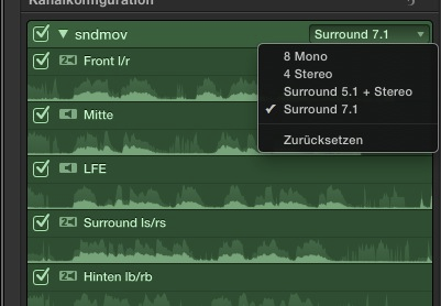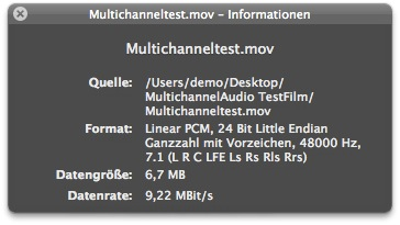 Die Movies muessen im QT Player im Inspektor 7.1 (oder 5.1) anzeigen: