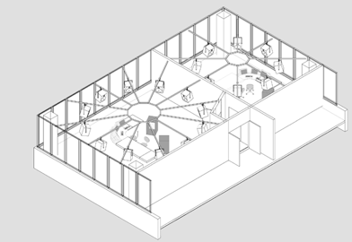 It is a large studio complex for the "Institute of Communication Sciences“ (today „Fachgebiet Audiokommunikation", Prof. Weinzierl) which works in the area of contemporary music with the focus of "sound in space", working together with international composers and engineers.